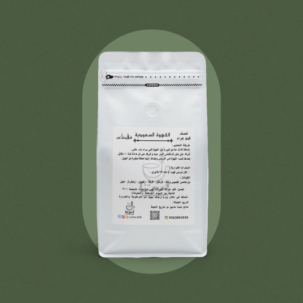 يوضع بالترمس أو الدله ثلاث ملاعق كبيرة من القهوة العربية ثم نضع عليها الماء المغلي